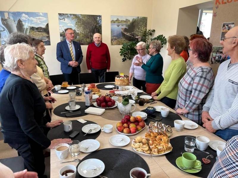 W związku ze zbliżającymi się świętem w dniu 7 listopada br. Starosta Nowodworski Pan Jacek Gross spotkał się z Członkami Żuławskiego Klubu Seniora. Starosta przy kawie i słodkim poczęstunku miał okazję poruszyć wiele ważnych kwestii oraz wysłuchać ciekawych historii. Wręczając kosz ze słodkościami złożył Seniorom najserdeczniejsze życzenia zdrowia, realizacji wszystkich planów i zamierzeń życiowych, podkreślił również aby pamiętali, że na każdym etapie życia można z niego czerpać i cieszyć się nim.