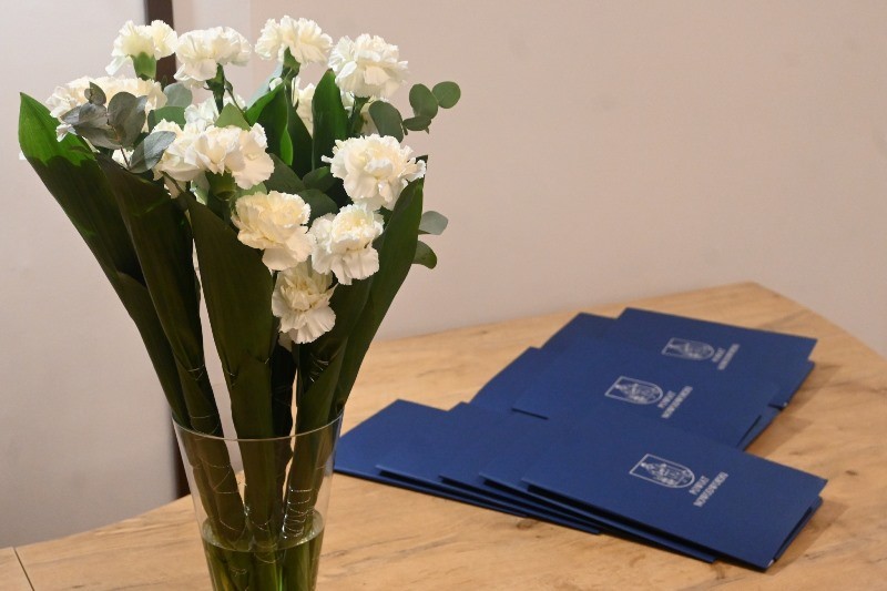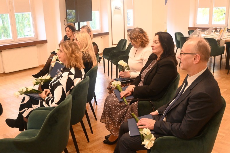 Uroczystość miała miejsce w sali konferencyjnej, tworząc atmosferę uznania i wspólnoty wśród osób zaangażowanych w obszar pomocy społecznej.