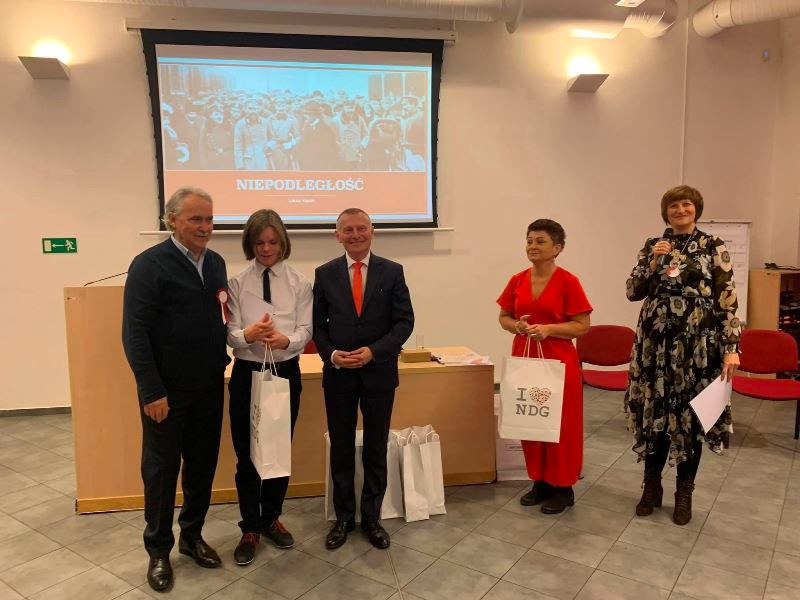 Burmistrz Jacek Michalski wraz z Senatorem Leszek Czarnobaj wręczyli nagrody za turniej z wiedzy historycznej.