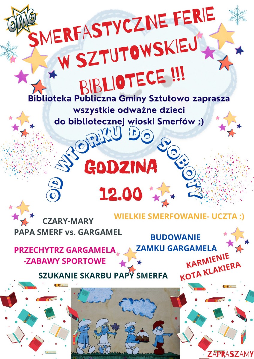 Biblioteka Publiczna w Sztutowie serdecznie zaprasza wszystkie dzieci na Smerfastyczne ferie.