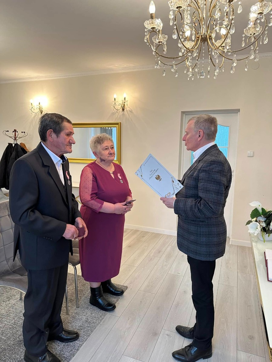 Państwo Grażyna i Julian Bierońscy obchodzą w tym roku piękny jubileusz – 50-lecie zawarcia związku małżeńskiego. Z tej wyjątkowej okazji otrzymali Medale Prezydenckie za Długoletnie Pożycie Małżeńskie, które wręczył im Burmistrz Nowego Dworu Gdańskiego, Jacek Michalski.
