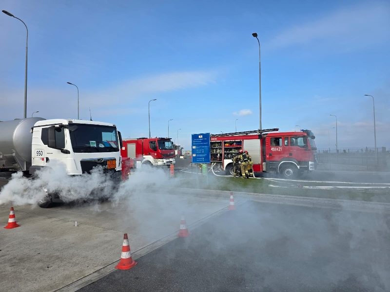 Ćwiczenia służb ratowniczych na stacji paliw MOL w Dworku – symulacja groźnego zdarzenia drogowego z udziałem materiałów niebezpiecznych