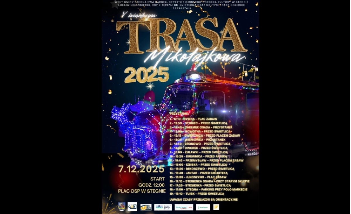 7 grudnia 2025 roku o godzinie 12:00 z placu przed remizą OSP Stegna ruszy V Świąteczna Trasa Mikołajkowa 2025 – wydarzenie, które co roku wprowadza mieszkańców Żuław w prawdziwie świąteczny nastrój. To jedna z najbardziej wyczekiwanych inicjatyw mikołajkowych w regionie, łącząca tradycję, lokalną społeczność i strażacką gotowość do działania w klimacie radości i wspólnego świętowania.