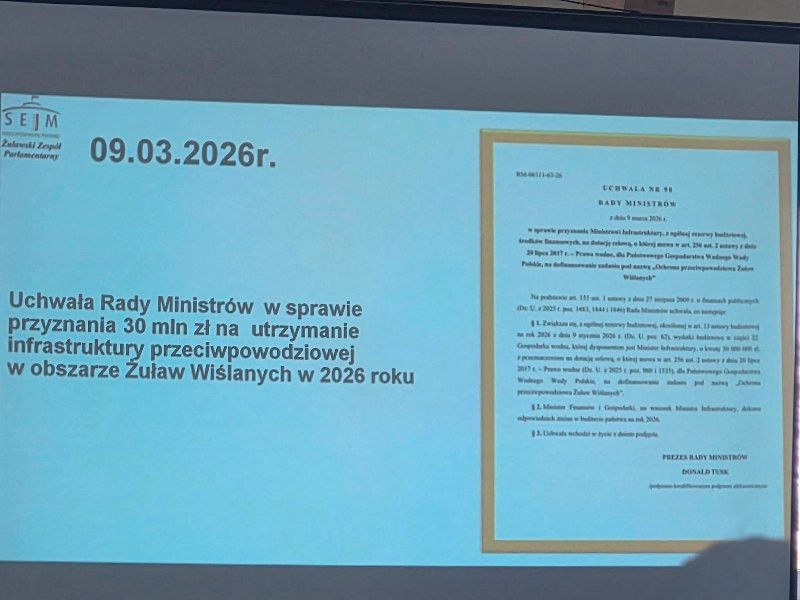 Podczas posiedzenia przedstawiono konkretne środki finansowe przeznaczone na rozwój i zabezpieczenie regionu. W 2026 roku na modernizację infrastruktury hydrotechnicznej trafi dodatkowe 30 mln zł z rezerwy Prezesa Rady Ministrów. Środki te zostaną wykorzystane m.in. na naprawy wałów przeciwpowodziowych, utrzymanie stacji pomp oraz zakup specjalistycznego sprzętu.