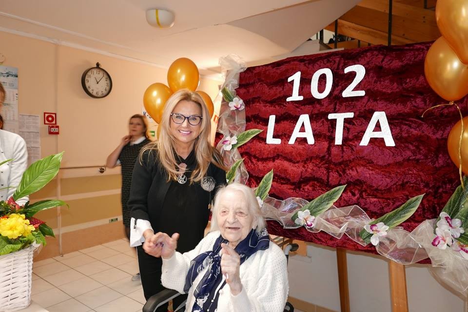 Dyrekcja, pracownicy i pensjonariusze Domu Pomocy w Stegnie świętowali 102 urodziny mieszkanki Pani Joanny.