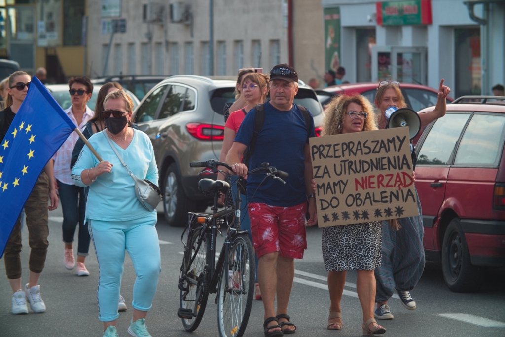 Przeciwnicy nowelizacji ustawy medialnej zebrali się na placu przed Żuławskim Ośrodkiem Kultury w piątek (13 sierpnia) o godz. 17.00. Stamtąd przeszli ulicami Morską i Warszawską na rondo Jana Pawła II, które blokowali przez dłuższy czas. Później protestujący tą samą trasą wrócili pod budynek ŻOK.