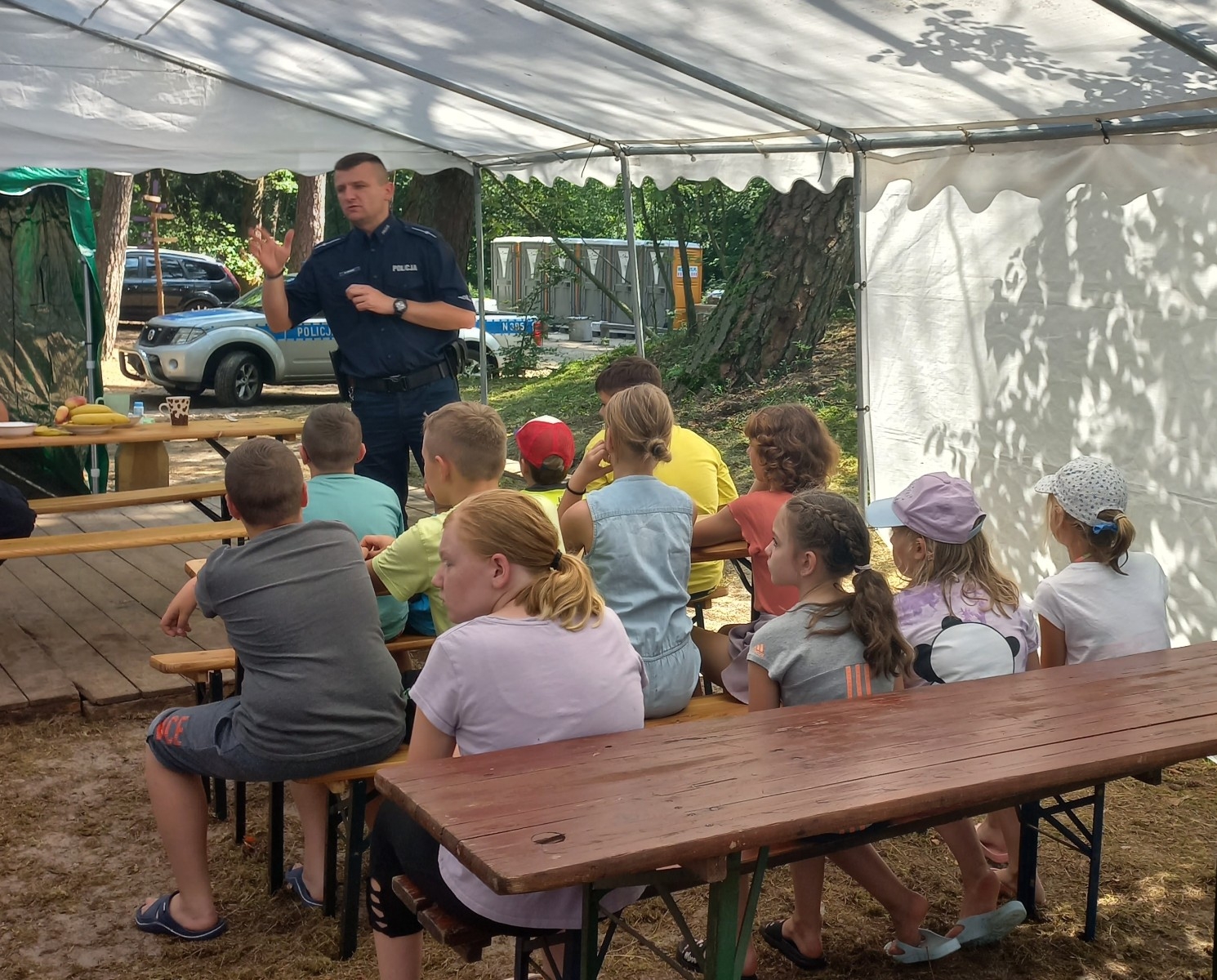 W ramach akcji „Kręci mnie bezpieczeństwo nad wodą” policjantka zajmująca się profilaktyką społeczną wspólnie z dzielnicowym spotkała się z dziećmi i młodzieżą, przebywającymi na obozach harcerskich na terenie powiatu nowodworskiego. Podczas spotkań omówiono tematy, związane przede wszystkim z bezpieczeństwem nad wodą.