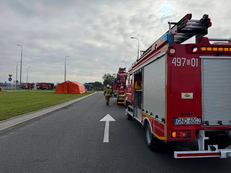 Na miejscu ćwiczeń pojawiły się pierwsze zastępy straży pożarnej, które przystąpiły do zabezpieczenia terenu i oceny zagrożenia. Kluczowym elementem działań było ograniczenie wycieku substancji niebezpiecznej oraz udzielenie kwalifikowanej pomocy osobom poszkodowanym. Strażacy przeprowadzili także segregację medyczną (triage), umożliwiającą sprawne zarządzanie pomocą medyczną w sytuacji z wieloma rannymi.