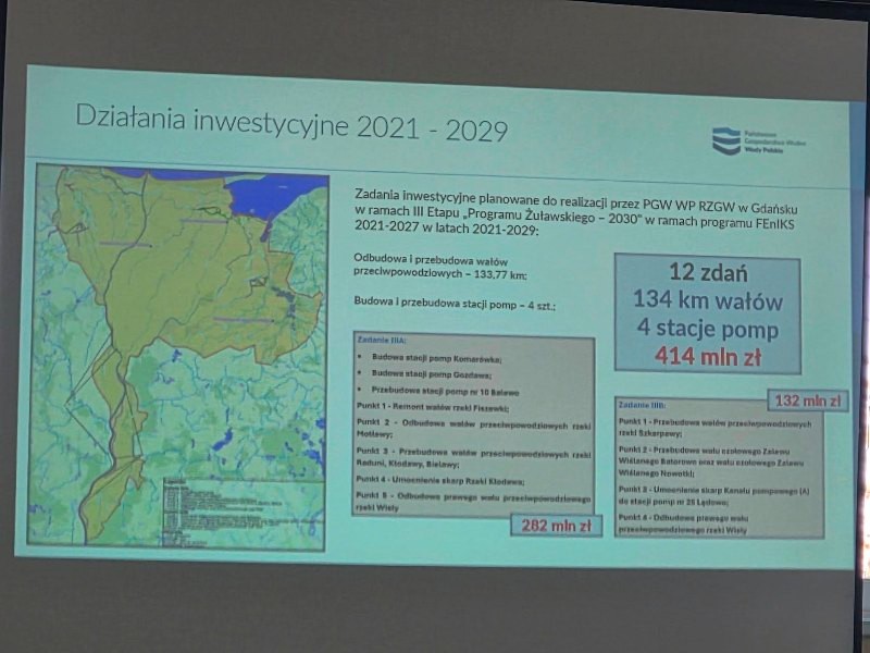 Omówiono także założenia wdrażania Programu Wieloletniego Ochrony Przeciwpowodziowej Żuław Wiślanych oraz plan utrzymania infrastruktury w 2026 roku.