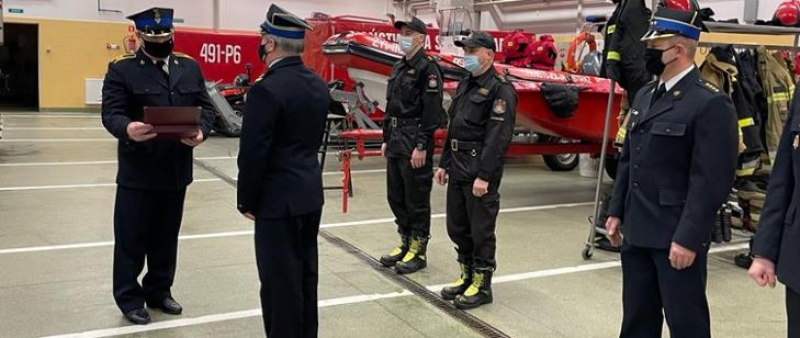 Z tej okazji w Komendzie Powiatowej Państwowej Straży Pożarnej w Nowym Dworze Gdańskim odbyła się uroczysta zbiórka. Podczas uroczystości Komendant Powiatowy PSP w Nowym Dworze Gdańskim bryg. Janusz Leszczewski przybliżył przebieg kariery funkcjonariusza oraz wręczył decyzję w związku z przejściem na zaopatrzenie emerytalne.